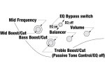 The EQ bypass control offers precision tonal adjustments, including a switch to choose passive-only operation. When the EQ bypass is activated, the treble tone control knob becomes the global tone control for the passive circuit.