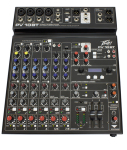 Modern features such as Bluetooth allow seamless connection to almost any "smart" device. 4 direct outs allow easy connection to most DAW interfaces for recording. In addition, the PV 10 BT can stream audio directly to a PC. MP3 playback is also available, just plug a flash drive with MP3 files on it into the USB A port and use the LCD to select and play back music. The PV series Solo feature allows the user to listen to individual channels via headphone or control room outputs, and the EQ bypass allows the user to hear and compare the EQ'd signal to the original signal with the push of a button. 2 channels of compression keep signals with difficult levels under control, and Peavey's exclusive guitar shape adjusts the EQ and preamp specifically for guitar. Hi pass filters on every channel remove unwanted rumble and noise, and balanced AUX and Master outputs ensure a clean noise-free signal to your powered speakers or power amplifier.